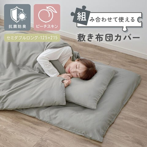 敷き布団カバー 抗菌防臭 セミダブルロング 敷布団カバー 125×215cm なめらか ピーチスキン 敷きカバー しき布団カバー【無地アッシュグレー】組み合わせて使えるカバー