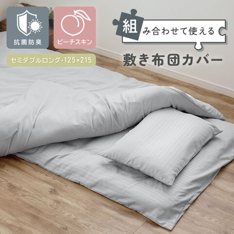 敷き布団カバー 抗菌防臭 セミダブルロング 敷布団カバー 125×215cm なめらか ピーチスキン 敷きカバー しき布団カバー【サテン調シルバー】組み合わせて使えるカバー