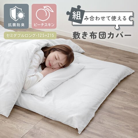 敷き布団カバー 抗菌防臭 セミダブルロング 敷布団カバー 125×215cm なめらか ピーチスキン 敷きカバー しき布団カバー【サテン調ホワイト】組み合わせて使えるカバー