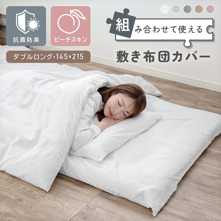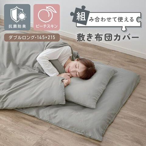 敷き布団カバー 抗菌防臭 ダブルロング 敷布団カバー 145×215cm なめらか ピーチスキン 敷きカバー しき布団カバー【無地アッシュグレー】組み合わせて使えるカバー