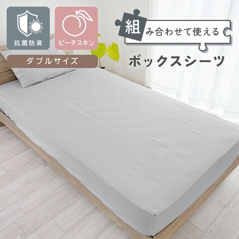 ボックスシーツ 抗菌防臭 ダブル 140×200×35cm なめらか ピーチスキン ベッドシーツ【サテン調シルバー】組み合わせて使えるカバー