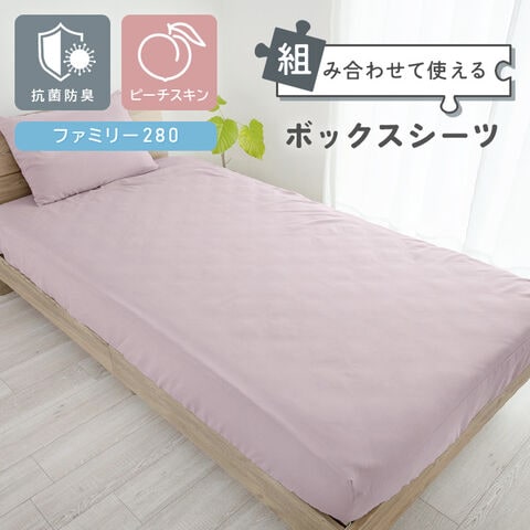 ボックスシーツ 抗菌防臭 ファミリー 280×200×35cm なめらか ピーチスキン ベッドシーツ【無地スモーキーピンク】組み合わせて使えるカバー