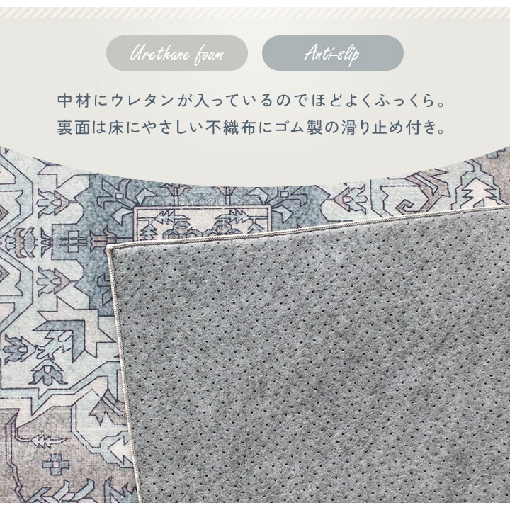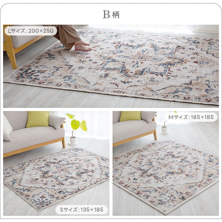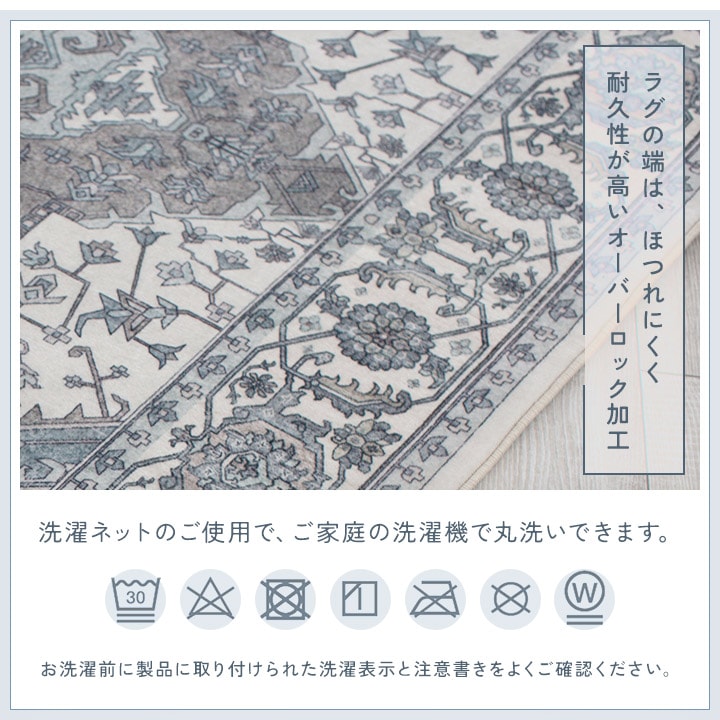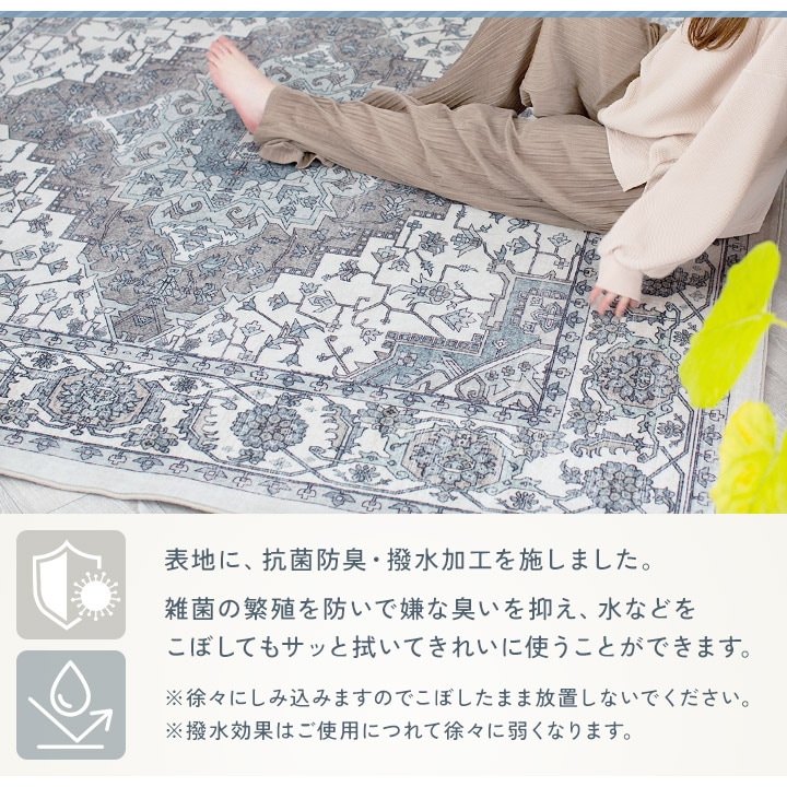 ラグ 洗える Sサイズ 長方形 1.5畳 オリエンタル柄 撥水 転写プリントラグ 洗えるラグ ラグマット 防菌 防臭 床暖房対応 滑り止め ホットカーペット対応 マイクロファイバー 手織り風プリント ヴィンテージスタイル アンティーク風【B柄】
