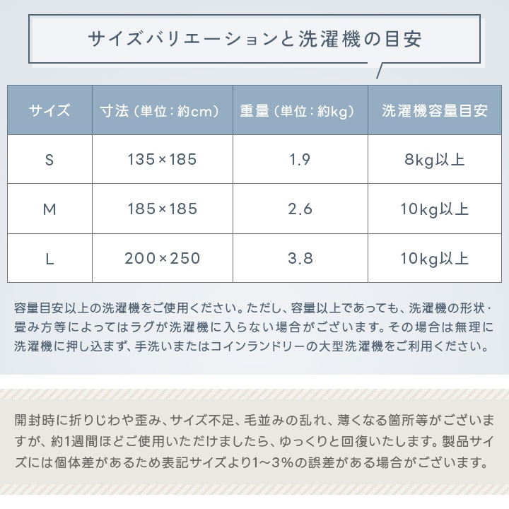 製品サイズには個体差があるため表記サイズより1~3%の誤差がある場合がございます。