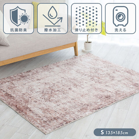ラグ 洗える Sサイズ 長方形 1.5畳 オリエンタル柄 撥水 転写プリントラグ 洗えるラグ ラグマット 防菌 防臭 床暖房対応 滑り止め ホットカーペット対応 マイクロファイバー 手織り風プリント ヴィンテージスタイル アンティーク風【C柄】