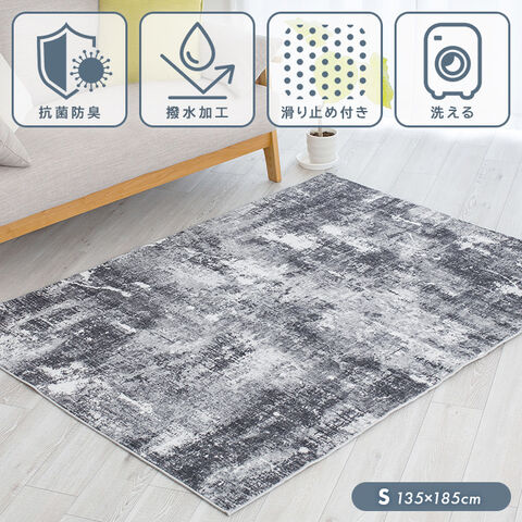 ラグ 洗える Sサイズ 長方形 1.5畳 オリエンタル柄 撥水 転写プリントラグ 洗えるラグ ラグマット 防菌 防臭 床暖房対応 滑り止め ホットカーペット対応 マイクロファイバー 手織り風プリント ヴィンテージスタイル アンティーク風【D柄】