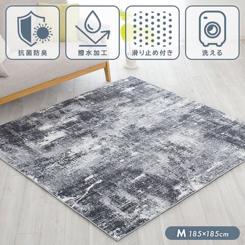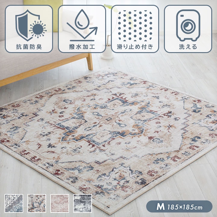 ラグ 洗えるMサイズ 正方形 2畳 オリエンタル柄 撥水 転写プリントラグ 洗えるラグ ラグマット 防菌 防臭 床暖房対応 滑り止め ホットカーペット対応 マイクロファイバー 手織り風プリント ヴィンテージスタイル アンティーク風【D柄】