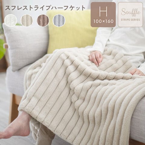 毛布 ハーフ ストライプ毛布 ふわふわ毛布 もこもこ毛布 ブランケット ふわふわ 2枚合わせ ふわとろ毛布 モコモコ 洗える 洗濯 厚手 静電気防止 ラビットファー ミンクファー スフレタッチ【ミルクティー】