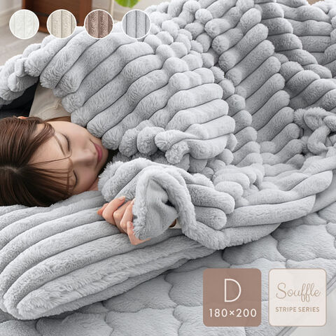 毛布 ダブル ストライプ毛布 ふわふわ毛布 もこもこ毛布 ブランケット ふわふわ 2枚合わせ ふわとろ毛布 モコモコ 洗える 洗濯 厚手 静電気防止 ラビットファー ミンクファー スフレタッチ【グレー】
