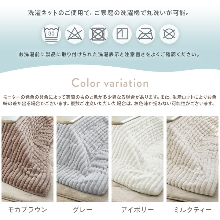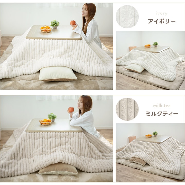 こたつ布団 185×185 洗える ストライプ 炬燵布団 もこもこ ふわふわ かわいい 吸湿発熱 蓄熱 あったか 暖かい 静電気防止 リバーシブル ラビットファー スフレタッチ【ミルクティー】