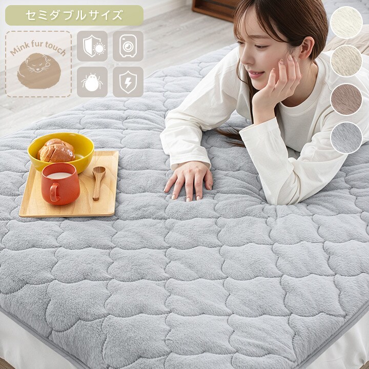 敷きパッド セミダブル あったか シーツ パッド 暖かい 滑り止め付き ウォッシャブル 四隅ゴム ミンクファー調 敷パッド【アイボリー】