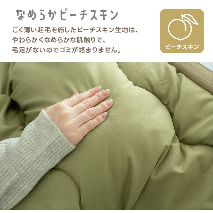 こたつ布団 長方形 185×235cm 洗える ウォッシャブル 洗濯機 ピーチスキン【グリーン】