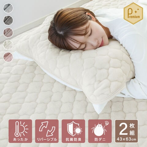 枕パッド 同色2枚セット【プレミアムタイプ】リバーシブル枕パッド 43×63cm あったか さらふわ 綿100 パイル 抗菌防臭 防ダニ 【ラテベージュ】