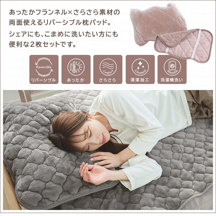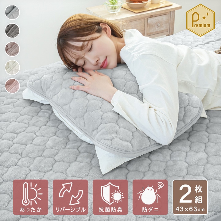 枕パッド 同色2枚セット【プレミアムタイプ】リバーシブル枕パッド 43×63cm あったか さらふわ 綿100 パイル 抗菌防臭 防ダニ 【スモーキーピンク】