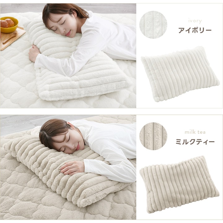 枕カバー 43×63 ピロケース ピローケース ふわふわ もこもこ 洗える 洗濯 厚手 静電気防止 ラビットファー スフレタッチ レギュラーサイズ ファスナータイプ【ミルクティー】
