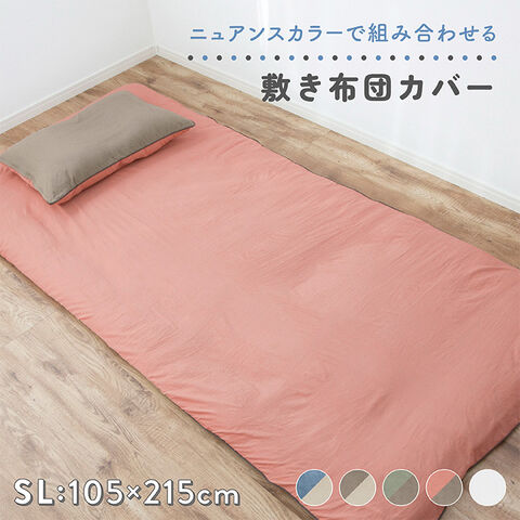 敷き布団カバー シングルロング 105×215cm リバーシブル ニュアンスカラー バイカラー シンプル 抗菌防臭【コーラル+グレージュ】ニュアンスカラーで組み合わせるカバー