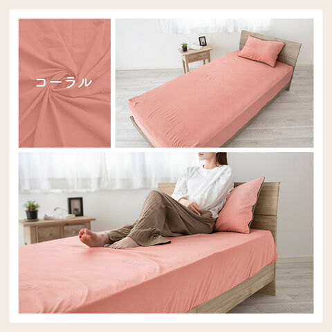 ボックスシーツ セミシングルショート 80×180×35cm ニュアンスカラー 抗菌防臭【コーラル】ニュアンスカラーで組み合わせるカバー