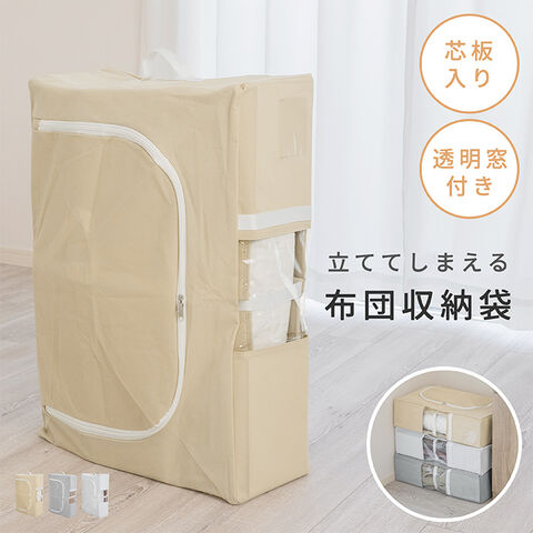 布団収納ケース 不織布 立てられる 布団収納袋 クローゼット 衣類 自立 コンパクト 立てる ぬいぐるみ クッション 縦置き 持ち手付 省スペース 引越し