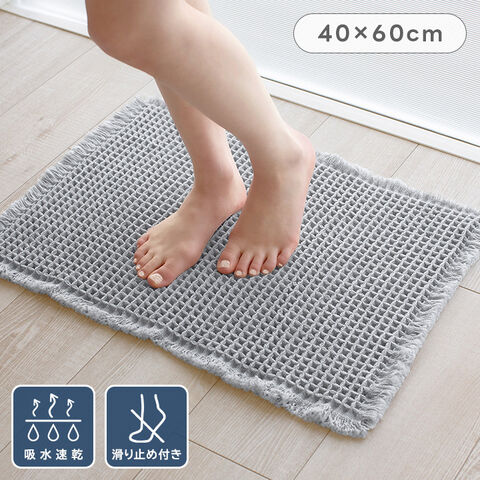 バスマット 吸水速乾 ワッフル 40×60 速乾 お風呂マット 浴室マット 足拭きマット マット 吸水 洗える【グレー】