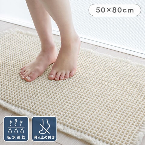 バスマット 吸水速乾 ワッフル 50×80 速乾 お風呂マット 浴室マット 足拭きマット マット 吸水 洗える【アイボリー】