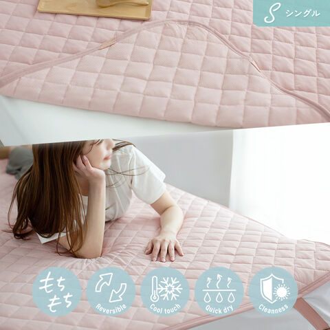 敷きパッド 冷感 もちもち リバーシブル シングル ひんやり 接触冷感 さらさら 吸水速乾 ワッフル 清潔 速乾 抗菌 防臭 敷パッド 敷きパット【ピンク】