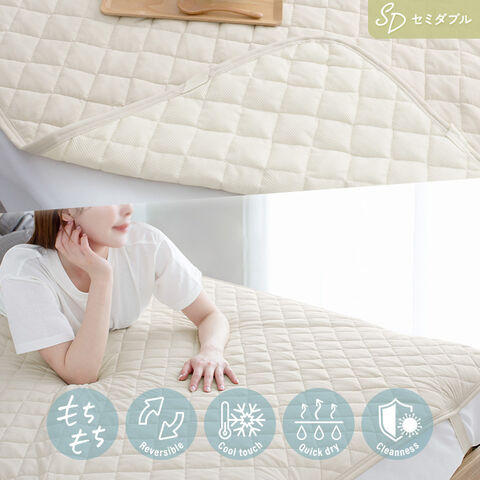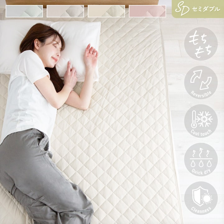 敷きパッド 冷感 もちもち リバーシブル セミダブル ひんやり 接触冷感 さらさら 吸水速乾 ワッフル 清潔 速乾 抗菌 防臭 敷パッド 敷きパット【ベージュ】