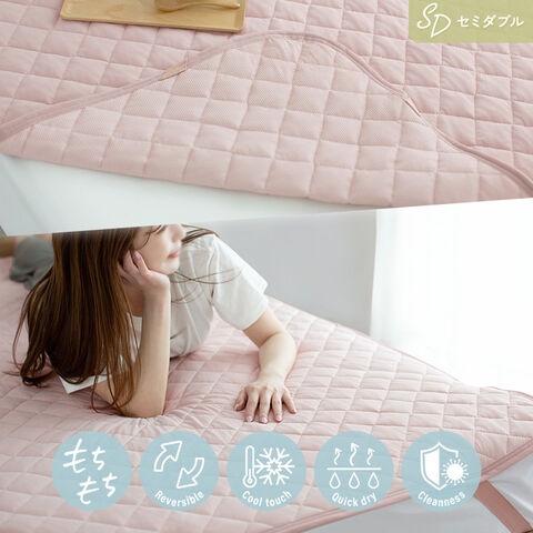 敷きパッド 冷感 もちもち リバーシブル セミダブル ひんやり 接触冷感 さらさら 吸水速乾 ワッフル 清潔 速乾 抗菌 防臭 敷パッド 敷きパット【ピンク】