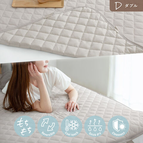 敷きパッド 冷感 もちもち リバーシブル ダブル ひんやり 接触冷感 さらさら 吸水速乾 ワッフル 清潔 速乾 抗菌 防臭 敷パッド 敷きパット【グレージュ】
