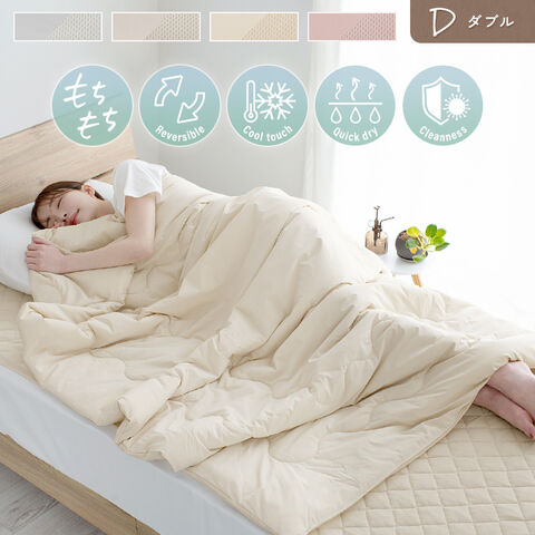 肌掛け布団 強冷感 ダブル 吸水速乾 接触冷感 リバーシブル もちもち さらさら ひんやりクール 洗える キルトケット 夏布団 抗菌 防臭 清潔 掛布団 肌ふとん【ベージュ】