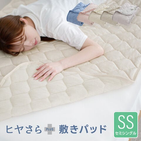 敷きパッド セミシングル 冷感 速乾 リバーシブル ひんやり 接触冷感 さらさら 吸水速乾 パイル 洗える 清潔 抗菌防臭 防ダニ 【ベージュ】ヒヤさら+(プラス)