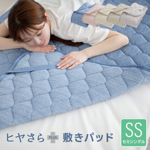 敷きパッド セミシングル 冷感 速乾 リバーシブル ひんやり 接触冷感 さらさら 吸水速乾 パイル 洗える 清潔 抗菌防臭 防ダニ 【ネイビー】ヒヤさら+(プラス)
