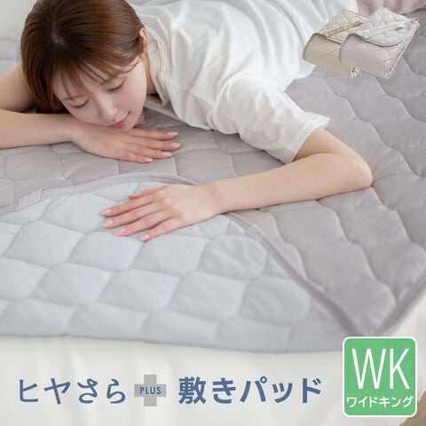 敷きパッド ワイドキング 冷感 速乾 リバーシブル ひんやり 接触冷感 さらさら 吸水速乾 パイル 洗える 清潔 抗菌防臭 防ダニ 【アッシュ】ヒヤさら+(プラス)