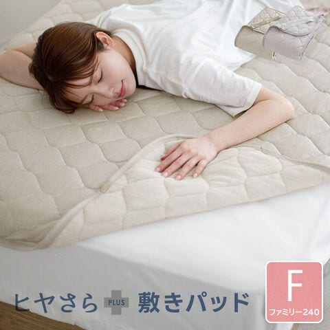 敷きパッド ファミリー 240 冷感 速乾 リバーシブル ひんやり 接触冷感 さらさら 吸水速乾 パイル 洗える 清潔 抗菌防臭 防ダニ 【グレージュ】ヒヤさら+(プラス)