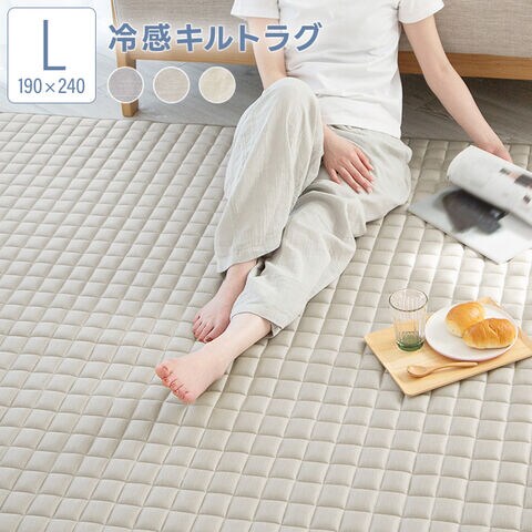 ラグ ひんやりキルトラグ 190×240 3畳 冷感ラグ 接触冷感 ひんやり 洗えるラグ【グレージュ】