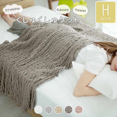 くしゅくしゅケット ひざかけ タオルケット ハーフ 綿100 綿パイル コットン パイル 洗える 【グレージュ】