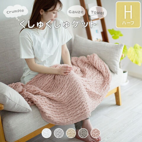 くしゅくしゅケット ひざかけ タオルケット ハーフ 綿100 綿パイル コットン パイル 洗える 【ピンク】