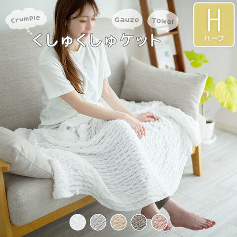 くしゅくしゅケット ひざかけ タオルケット ハーフ 綿100 綿パイル コットン パイル 洗える 【ホワイト】