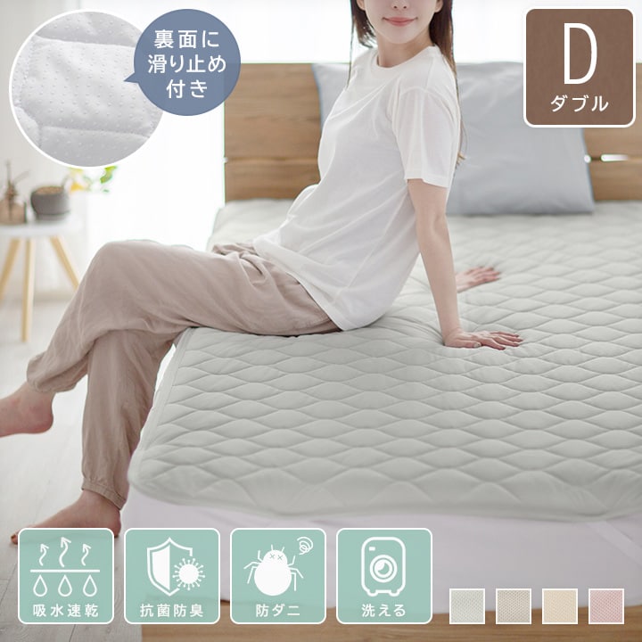 敷きパッド さらさら ダブル 清潔 吸水速乾 ニットメッシュ 滑り止め オールシーズン 春 夏 秋 敷パッド 敷パット 敷きパット 速乾 シンプル くすみカラー ずれにくい ウォッシャブル 【ベージュ】
