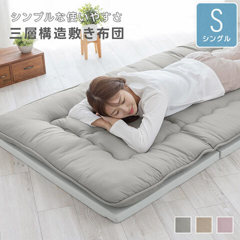 敷き布団 シングル 三層構造敷き布団 抗菌防臭 防カビ アッシュグレー