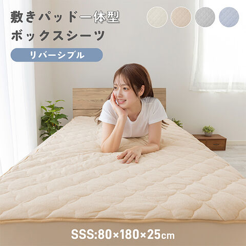 敷きパッド一体型ボックスシーツ セミシングルショート 綿100% パイル 吸湿 タオル地 コットン リバーシブル 吸水速乾 ニットワッフル オールシーズン シーツ マットレスカバー 【サンドベージュ】