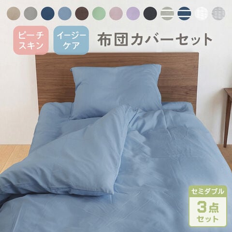 布団カバーセット 布団カバー3点セット セミダブル 掛け布団カバー 枕カバー 敷き布団カバー 【スモークブルー】
