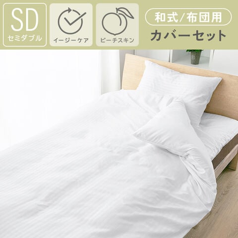 布団カバー3点セット セミダブルサイズ サテン調ホワイト