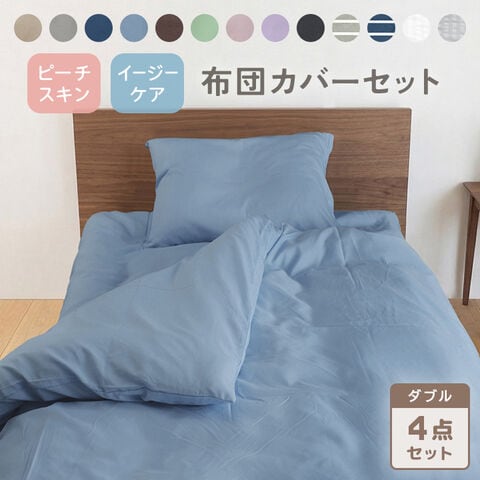 布団カバーセット 布団カバー4点セット ダブル 掛け布団カバー 枕カバー 敷き布団カバー 【スモークブルー】