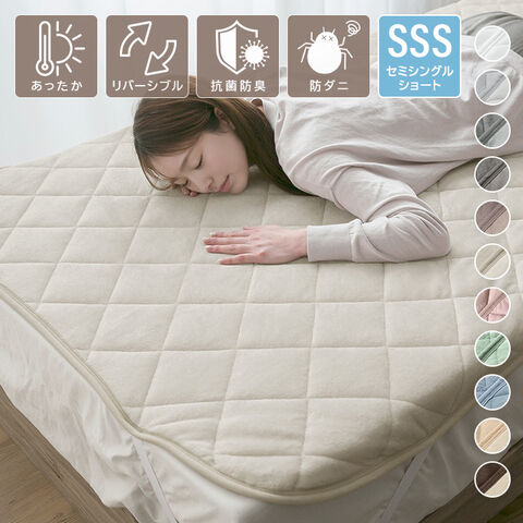 敷きパッド セミシングルショート あったか フランネル × さらさら ワッフル リバーシブル敷きパッド セミシングルショート丈 防ダニ 抗菌防臭 春 夏 秋 冬 【ラテベージュ】