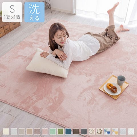 ラグ 1.5畳 洗える ラグマット 洗えるラグ カーペット 絨毯 フランネルラグ 抗菌防臭 防ダニ 135×185cm 【ピンクベージュ】