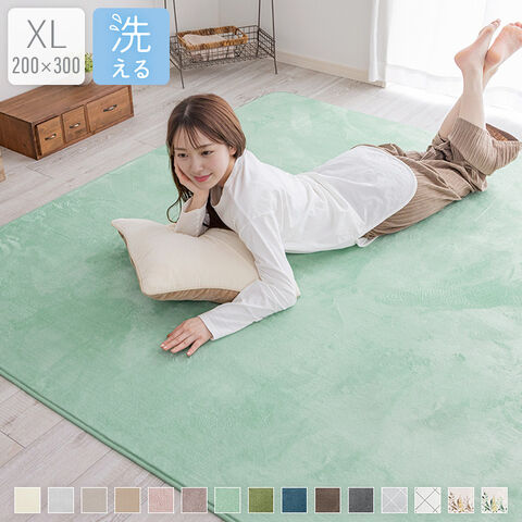 ラグ 4畳 洗える ラグマット 洗えるラグ カーペット 絨毯 フランネルラグ 抗菌防臭 防ダニ 200×300cm 【ミント】