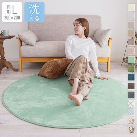 ラグ 2畳 洗える ラグマット 洗えるラグ カーペット 絨毯 フランネルラグ 抗菌防臭 防ダニ 直径200×200cm 【ミント】