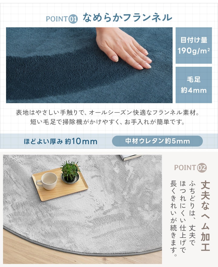 ラグ 2畳 洗える ラグマット 洗えるラグ カーペット 絨毯 フランネルラグ 抗菌防臭 防ダニ 直径200×200cm 【トープ】