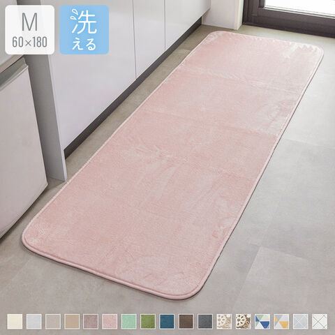 キッチンマット 180 幅広 洗える フランネルキッチンマット 60×180cm 抗菌防臭 防ダニ 【ピンクベージュ】