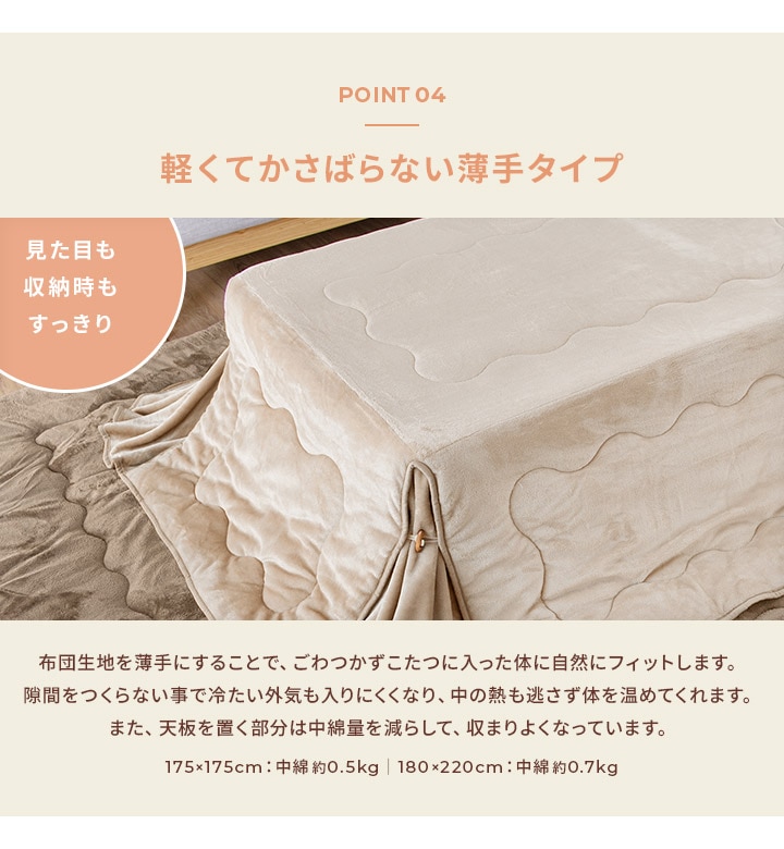 こたつ布団 省スペース こたつ掛け布団 180×220cm 長方形 洗える 【レース柄 ベージュ】
